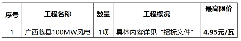 杭州北宇综合能源有限公司广西藤县100MW风电发电项目公开招标公告