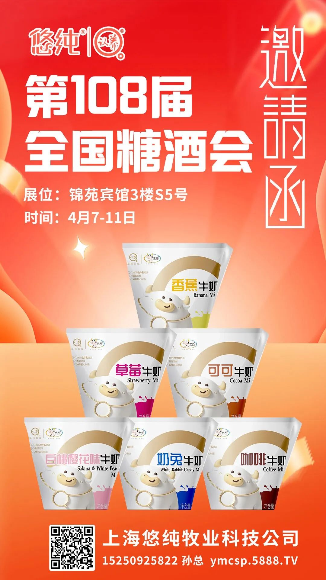 2023年全国春季糖酒会:4月7日-4月11日,上海悠纯牧业科技公司在锦苑宾馆3楼S5号期待您的光临。