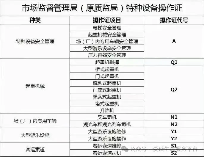 专业类型:电梯安全管理证A、起重机械安全管理证A、大型游乐设施安全管理A、锅炉证G1\G3、电梯维修证T、起重机指挥Q1、桥式、门式、流动式等起重机Q2、升降机Q2、叉车司机证N1、电梯检测员证