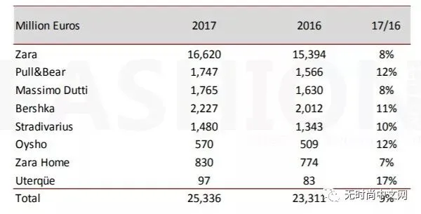 2017财年,西班牙集团收入253.36亿欧元,较2016年233.11亿欧元增长8.7%,固定汇率增幅10%,期内可比销售增幅5%,仅为2016年10%的一半,创下三年新低。 集团同时表示,2月1日-3月11日,销售增幅为9%。