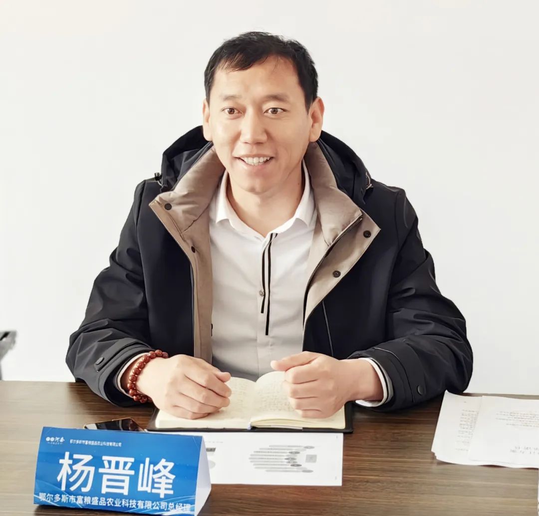 杨晋峰向与会人员介绍了企业发展历程及发展现状。富粮盛品农业科技有限公司坐落于自治区粮食主产区达拉特旗,粮食总产量达到17亿斤,具备原粮价格优势,是打造粮食仓储流通的理想集散地。公司成立于2021年,在发展过程中始终秉承“助农、兴农、富农”的发展理念,积极扩建粮食仓储设施,近期规划建设粮库2吨,增加仓储能力1万吨;远期规划扩建粮库5栋,使粮食仓储能力总计达到10万吨,逐渐建设成为大型的粮食种植与仓储一体化企业,为保障国家粮食安全、促进当地经济的发展做出更大的贡献。