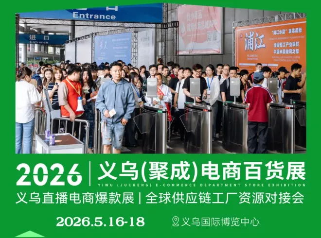 2026义乌(聚成)电商·外贸百货展(简称:义乌电商百货展),将于5月16-18日在义乌国际博览中心盛大启幕!作为国内有影响力的电商展会之一,义乌电商百货展立足“电商之都”义乌,汇聚来自18大品类的源头工厂供应商、服务商、电商平台、专业买家及行业专家。展出一次性用品、塑料制品、清洁用品、日化产品、杯壶、竹木、餐厨具、小家电、电商爆款等品类的丰富展品。为品牌商、渠道商、服务商提供最具商业价值的对接合作场。