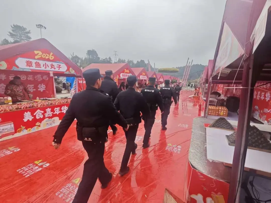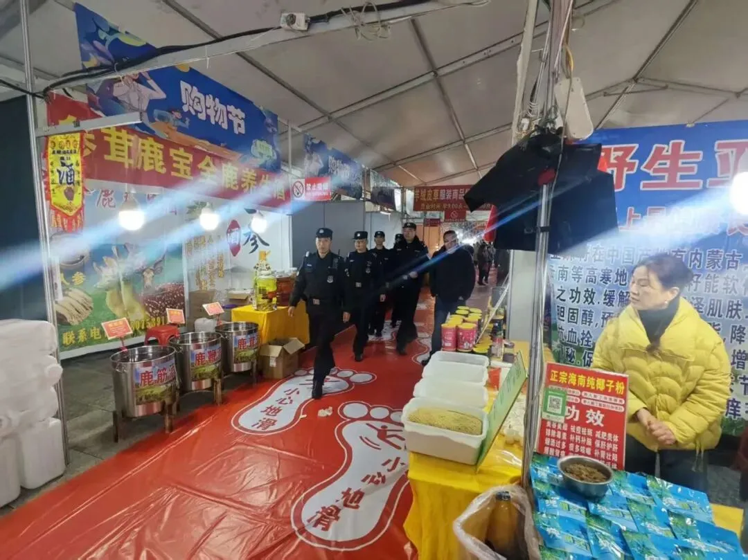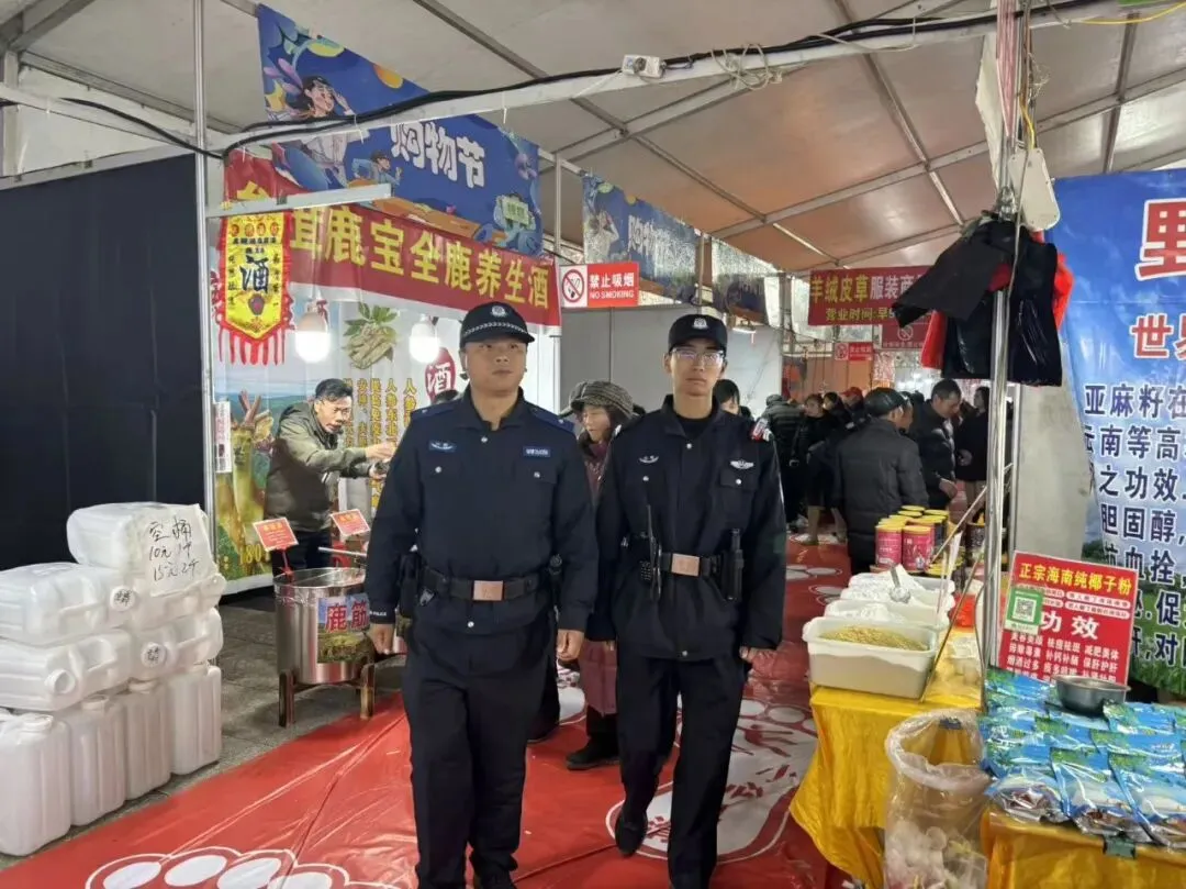 见警率显著提升:无论是场馆入口、停车区域,还是热闹的摊位区和美食街,都能看到民警巡逻值守的身影。