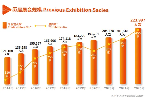 2025年:第二十五届中国国际工业博览会机器人展于2025年9月23日-28日在国家会展中心(上海)如约而至,本届机器人展以“具身工业,智领未来”为主题,展示面积56,000平方米,全球规模最大。参展企业共计450家,分别来自德国、美国、俄罗斯、日本、瑞士、瑞典、英国、丹麦、法国、以色列、意大利、中国台湾、韩国等10余个国家及地区。到场专业观众人数高达223,997人次,较上届增长了约11.1%