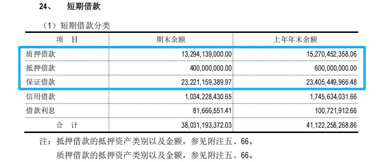 根据2024Q4数据显示,恒力石化虽然也有保证借款、质押借款、抵押借款,但是这都不是大头,其中信用借款占到了近1/4多,而超过一半的短期借款是来自商业票据贴现,等于是拿集团开出的商业票据拿去找银行借款,这个就是公司实力的一种体现。反观恒逸石化背后的恒逸集团在干什么——拿恒逸石化的股票去股权质押借款。