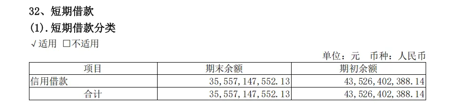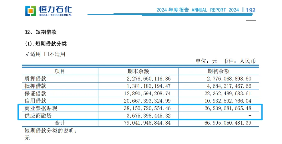 恒逸石化短期借款情况(2024Q4)