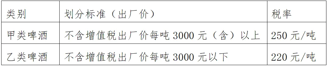 从量定额计征,根据出厂价格的不同,税率分为两档: