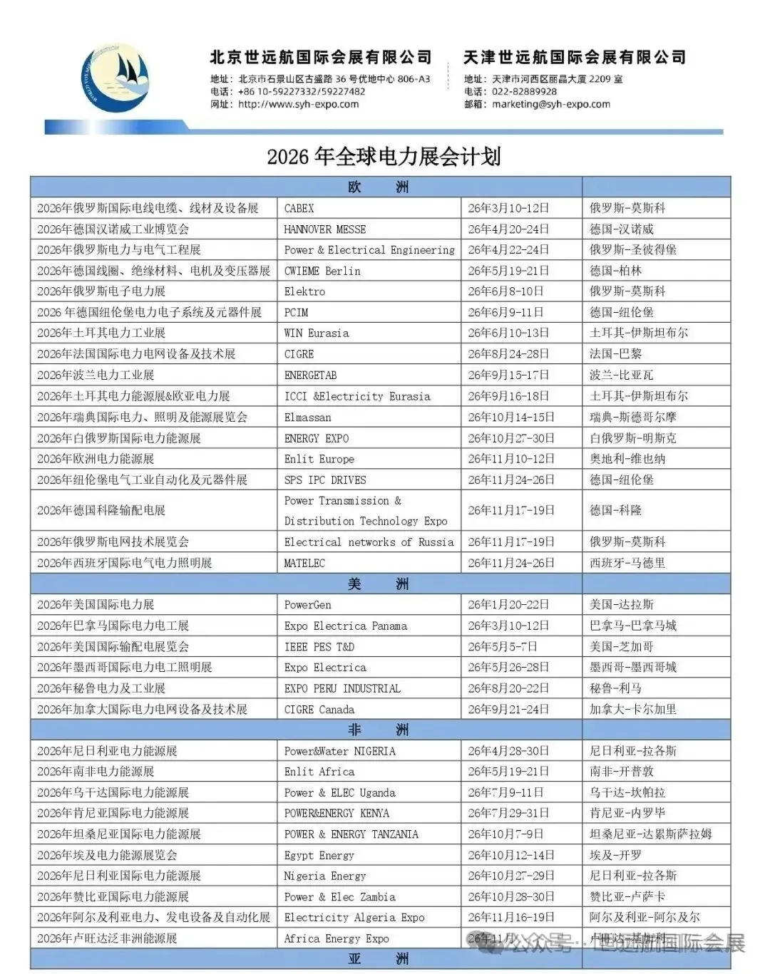 世远航国际会展有限公司自成立以来一直致力于策划、组织和承办国内外知名展会,为中国企业拓展海外市场服务,业务包含有电力,照明,环保,水处理,能源等行业。