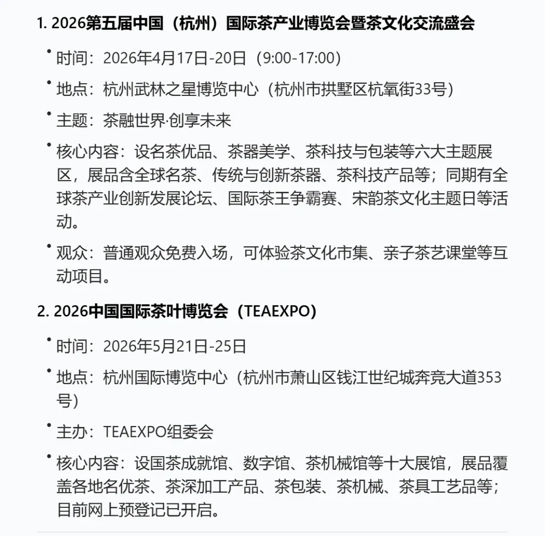 2026年杭州上城茶叶茶产业博览会2026年杭州下城茶叶茶产业博览会2026年杭州江干茶叶茶产业博览会2026年杭州拱墅茶叶茶产业博览会2026年杭州西湖茶叶茶产业博览会2026年杭州滨江茶叶茶产业博览会2026年杭州萧山茶叶茶产业博览会2026年杭州余杭茶叶茶产业博览会2026年杭州临安茶叶茶产业博览会