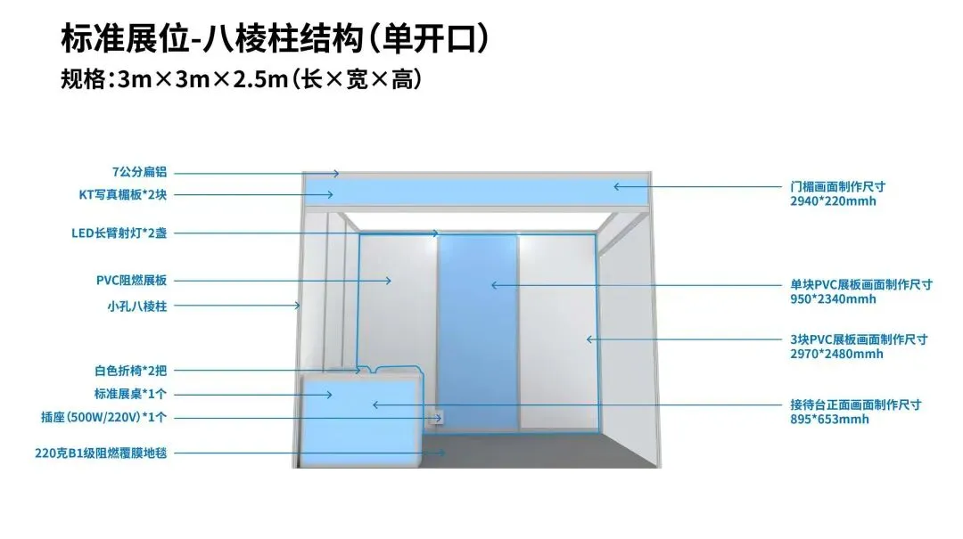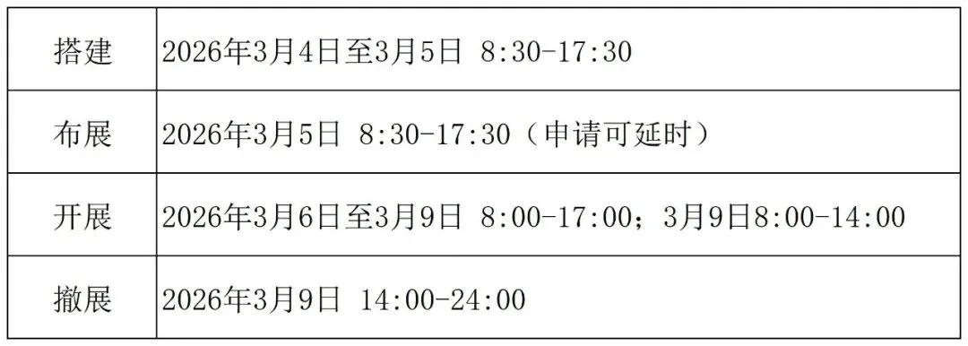 2、搭建标准:两个(含两个以上)标准展位,原则上通开搭建。有特殊要求的,请务必于2026年2月6日前发电子邮件至主场搭建邮箱报审,如果现场拆改将另收费用。
