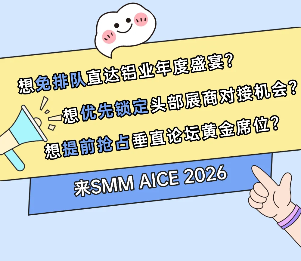 作为全球铝业产业链的专业交流平台,SMM AICE 2026铝产业博览会以“提质立标・向新通海”为主题,将于2026年4月8-10日在苏州国际博览中心盛大启幕。