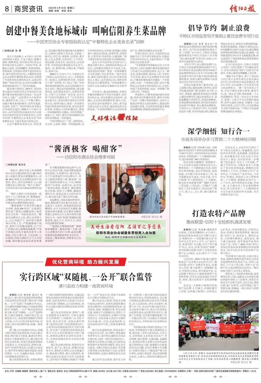转载(来源:信阳民企之声、信阳日报社2023年4月19日8版商贸资讯)