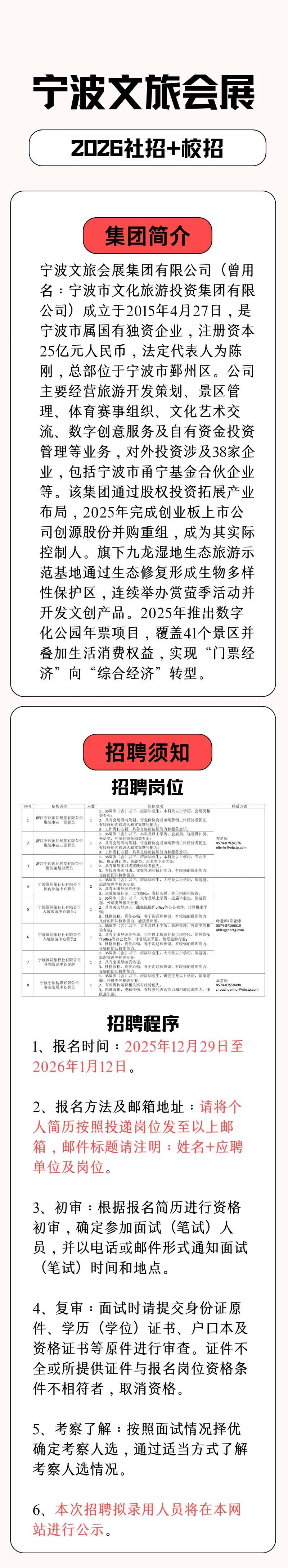 社招+校招!宁波文旅会展集团有限公司2026年招聘|内含笔试参考资料