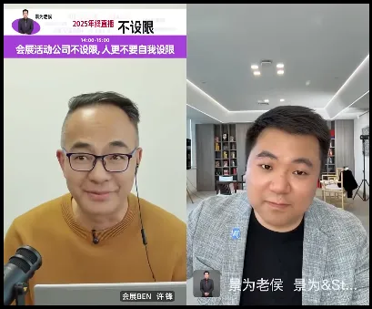 首位在12月30日会展BEN年终直播中登场的嘉宾,是景为会展集团董事长侯旭川,人称“景为老侯”。