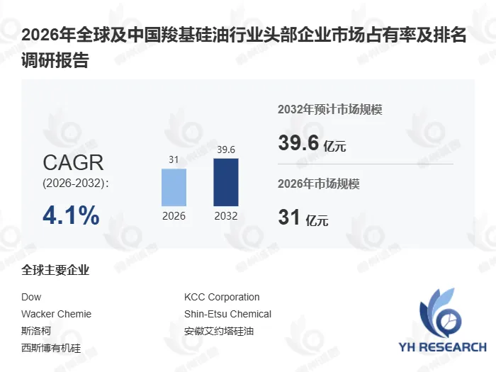 以上内容来自恒州诚思YHResearch出版的《2026年全球及中国羧基硅油行业头部企业市场占有率及排名调研报告》,同时提供英文,日文,韩文等不同语种版本报告。