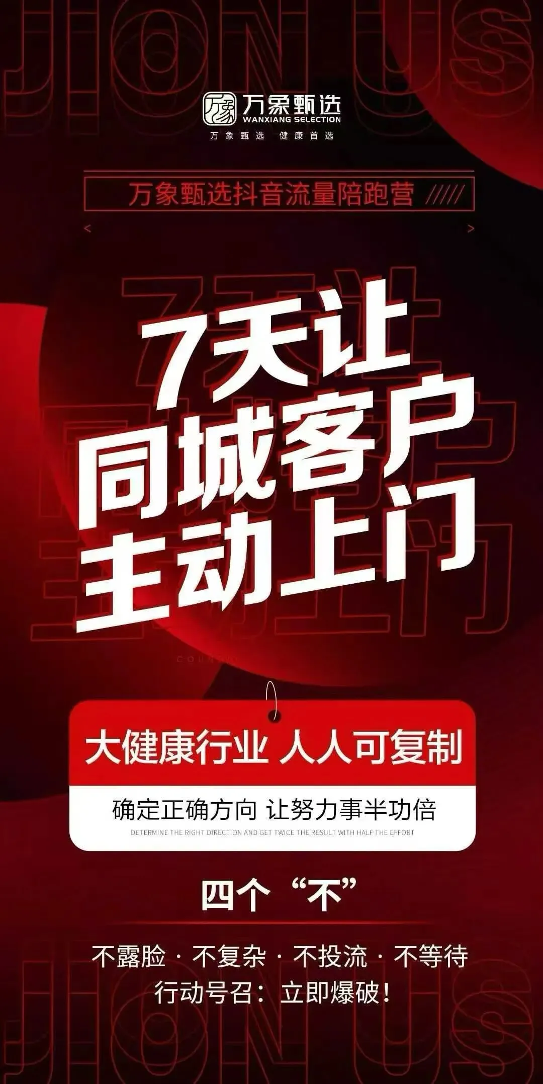 机会从不等人,成功只属于敢行动的人。万象甄选万人招商会席位有限,错过再等半年!