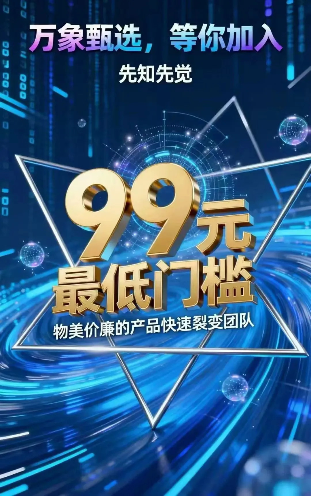 在创业赛道里,万象甄选颠覆行业逻辑,用99元超低门槛,让每个人都能拥有轻装上阵的机会: