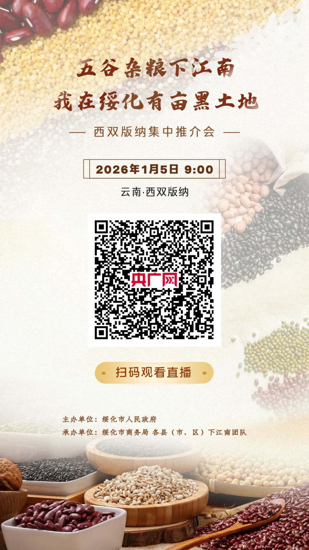 “五谷杂粮下江南”西双版纳集中推介会,扫码观看视频