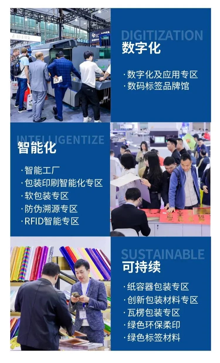 本届展会举办了20多场论坛和研讨会,如RFID智能包装引领鞋服零售新变革、RFID 电子标签、绿色包装材料及工艺创新、防伪与智能追溯、印包业AI+短视频拓客暨小批量定制等,为探寻印刷包装行业的未来发展提供新思路。