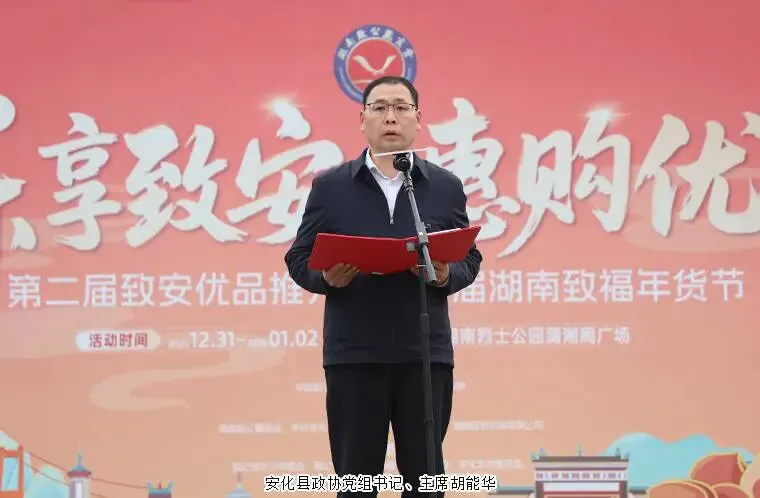 2025年12月31日—2026年1月2日,第二届致安优品推介会暨湖南致福年货节在长沙举行。湖南省人大常委会副主任、致公党湖南省委会主委胡旭晟,中共湖南省委统战部副部长向恩明,湖南省农业农村厅二级巡视员刘双娥,湖南省商务厅二级巡视员李再高,湖南省人民政府研究室副主任贺智昕,湖南省人大常委、致公党湖南省委会专职副主委田宗之,致公党湖南省委会副主委、湖南省政协民族和宗教委员会主任向佐谊,致公党长沙市委会专职副主委彭磊,安化县政协党组书记、主席胡能华,安化县人民政府党组成员、副县长贺磊等领导出席活动。中国致公党员、长沙市安化商会会长、绿之韵集团董事长胡国安,致公党湖南省委会数字互联委员会副主任兼秘书长、绿之韵集团常务副总经理蒋文参加活动。致公党长沙市委会,省委会各专委会,省直工委,长沙市委会党员代表,长沙市安化商会代表、致安农业及安化供应商代表、湖南致公麓商会会员、非遗传承人、媒体及广大市民游客一道共同见证并参与了这场集产品展销、品牌推介与文化传承于一体的年终盛会。