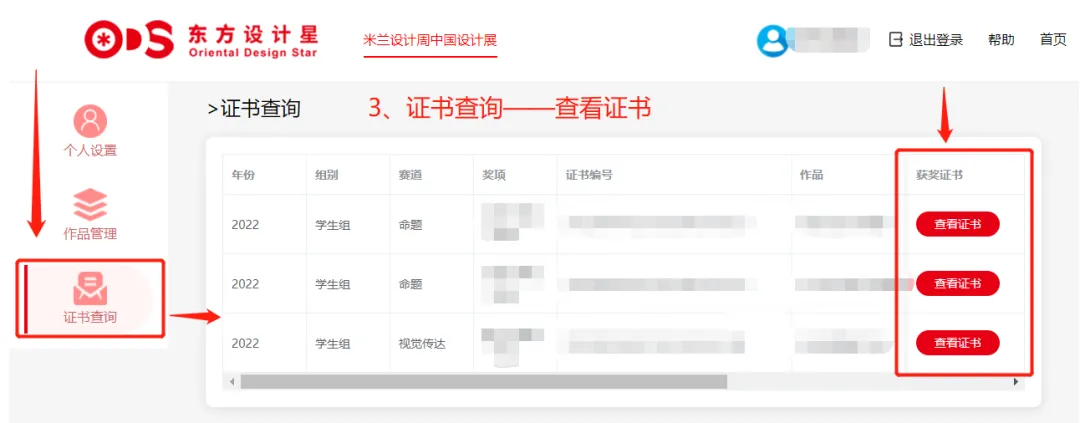 2022第六届“米兰设计周中国高校设计学科师生优秀作品展”已完成全部作品的评选工作,电子版获奖证书均已开放下载(电子证书与纸质证书具有同等效用),请各高校师生及时登录官网查询下载。01 个人端下载证书
