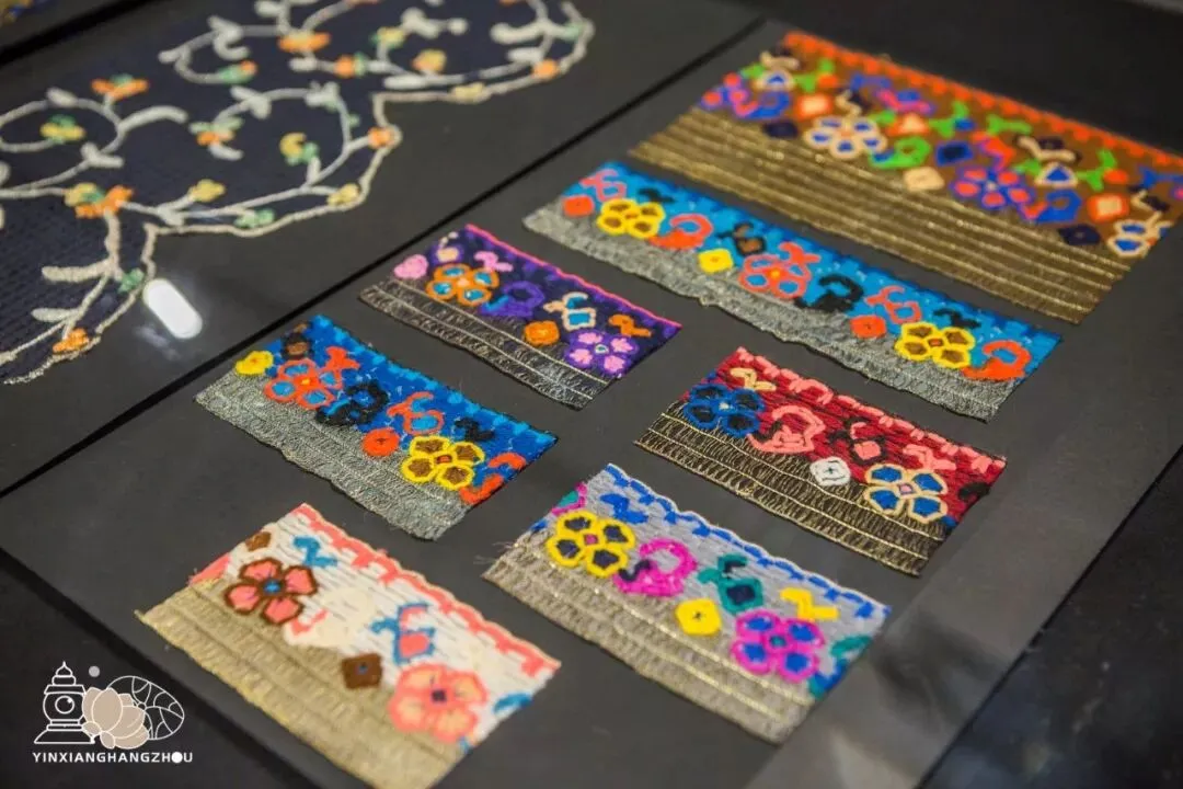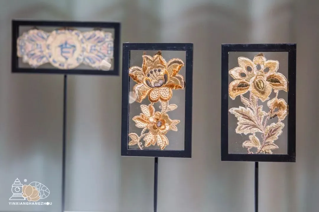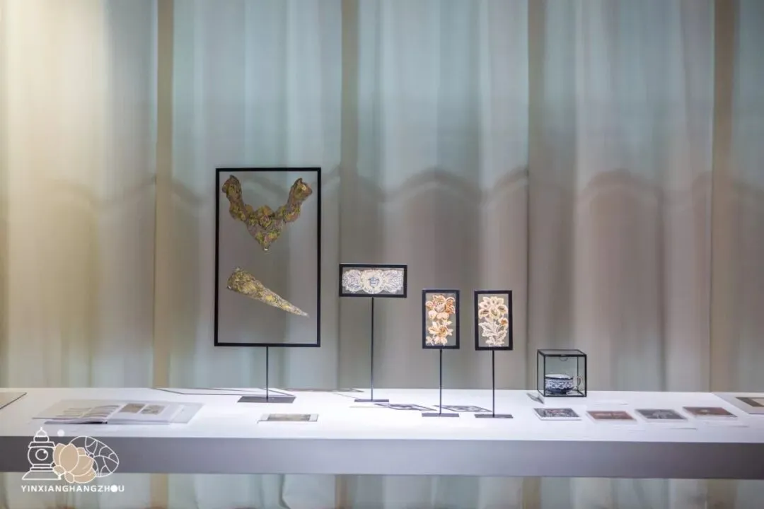几块蕴含异域风情的古老绣片吸引了众人注意,很难想象,在沟通不便的古代,欧洲的创作者仍能接受古老中国的汉字文化,并将它运用在更多的艺术创作中。