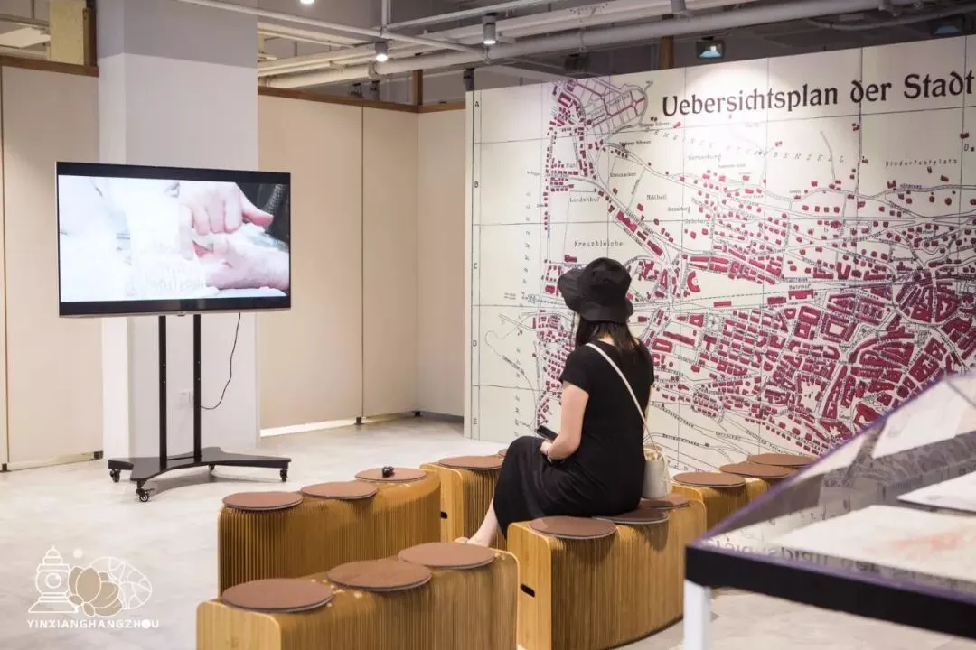 墙壁上的地图是1910年的圣加仑,而你坐在手风琴伸缩纸凳上,正在静静观赏瑞士蕾丝的百年创新之旅,视频里来自圣加仑面料博物馆的老馆长正在娓娓道来那些年的点点滴滴。