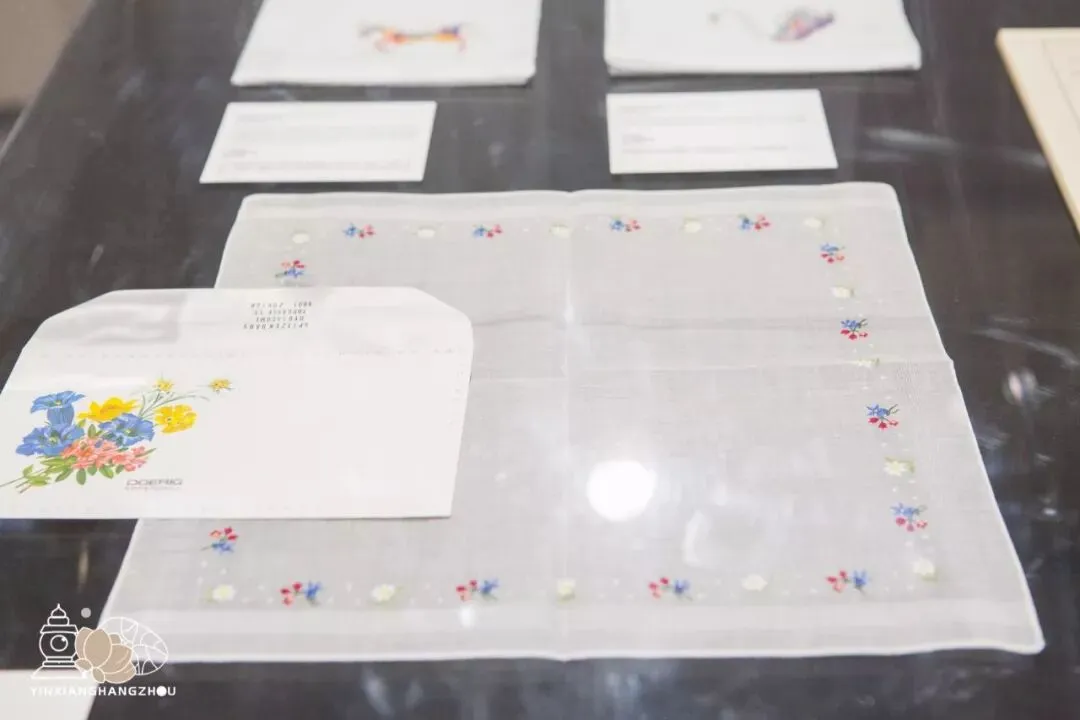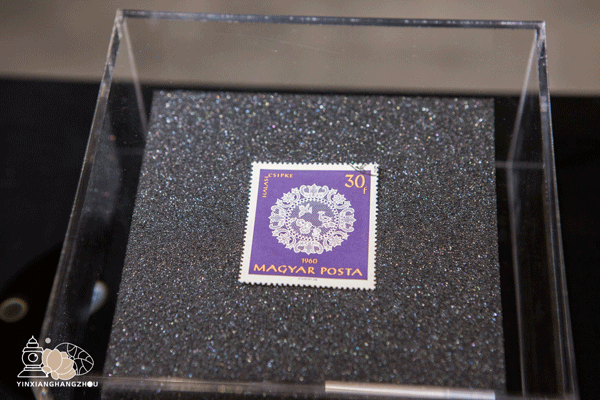 蕾丝邮票展区,可以使用放大镜近距离观看邮票上的蕾丝图案细节。