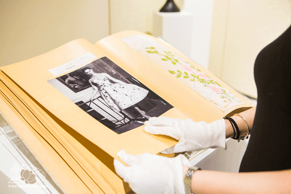 经历过战争的洗礼,蕾丝终于重生绽放出别样的色彩,时尚界也越来越重视蕾丝的应用和使用。展区内就展出了一本记录了1950s至1970s蕾丝成衣与细节的牛皮书。