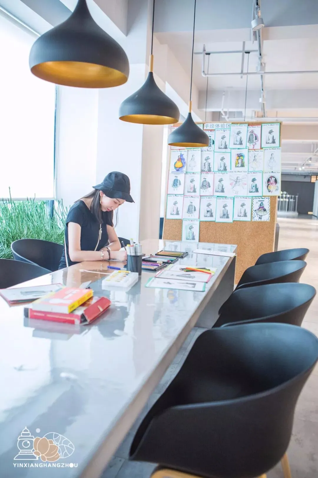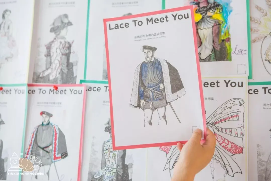 走出展区就能看见一方明亮的手绘体验区,七彩的绘画笔和三款精心打印的欧洲人物画纸。开动自己的奇思妙想,来描绘你心中最美的蕾丝图案吧!