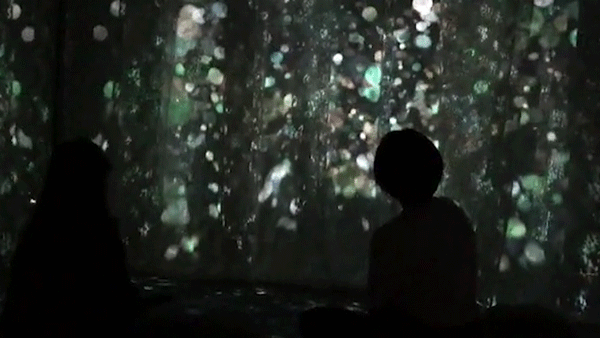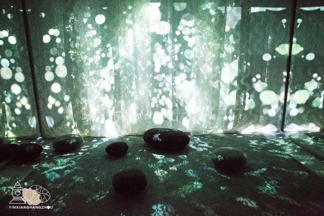 暗室是一个浸入式的体验空间,仿照阳光透过森林缝隙的自然现象,运用投影、鼓风机等手段将森林中的鸟鸣、风声完全填充这个幽静的空间之中。
