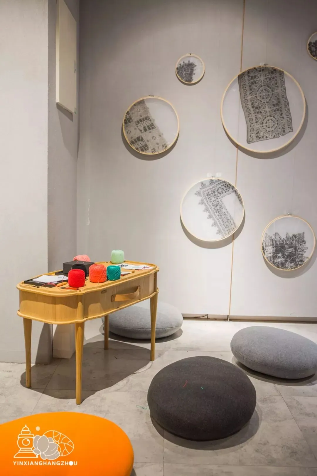 手作体验区摆放着一张专供游客体验的手工桌,坐在鹅卵石垫子上,消磨一下午,慢慢制作自己的蕾丝作品。