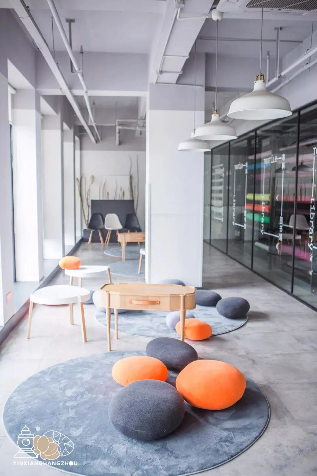 在馆藏了几千件布料的陈列馆背后,一扇落地窗边,一间休息室正在静静等待你的到来,旁边还有小小的一隅饮料甜点铺,逛累了休息一下正正好。