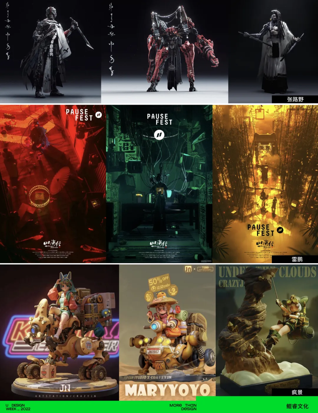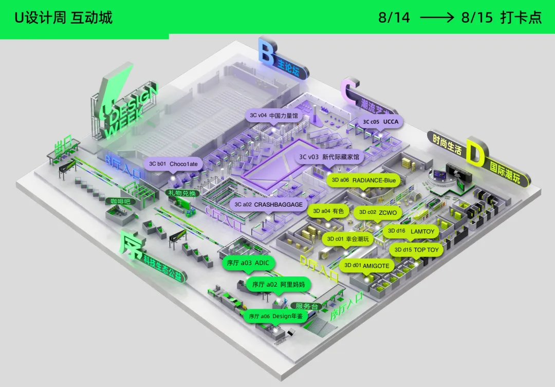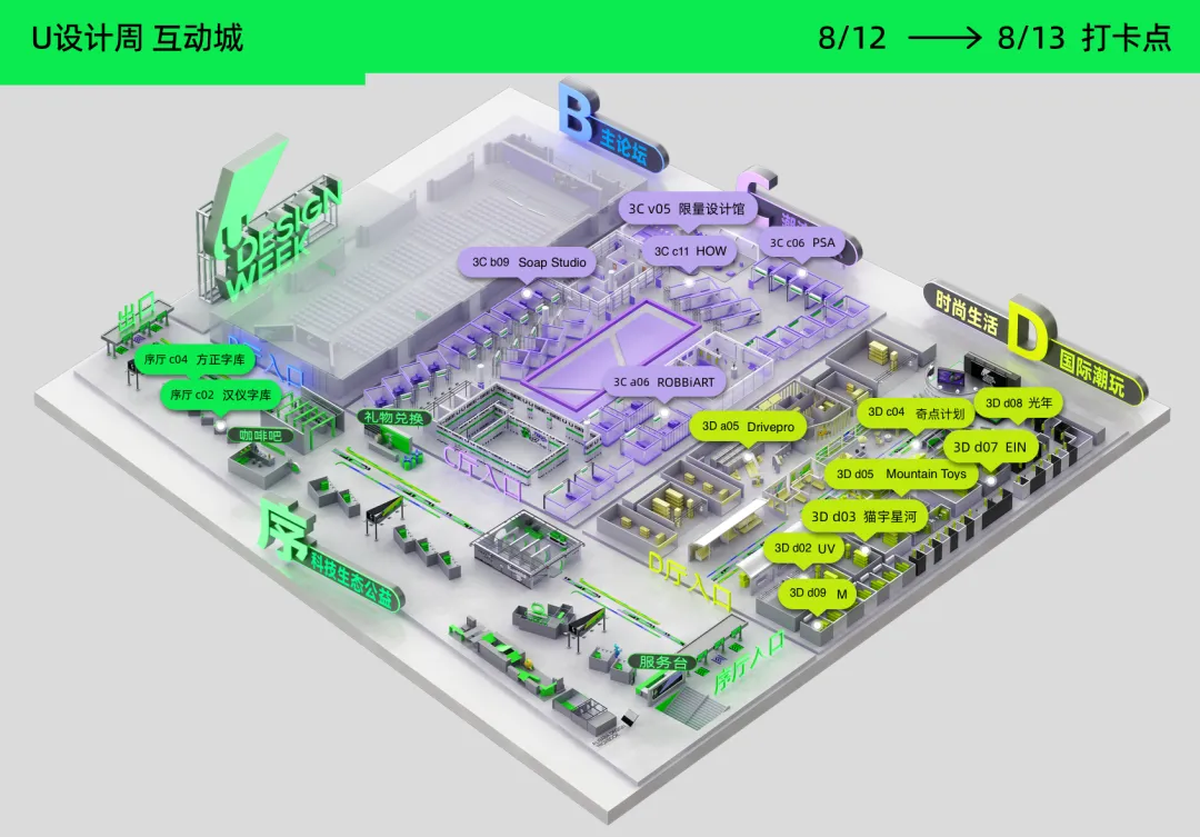U设计周还将带来CG展。邀请中国知名的全品类一站式CG数字内容版权交易平台—CGMODEL;和定位于 “数字创意开发” 打造独特文化IP创新产业品牌的鲲睿文化,来到设计周现场。带来众多设计师打造的精美、有创意的CG作品。现场除了实物也有虚拟作品可以大饱眼福,感受不同次元文化和对未来科技场景的无限畅想。