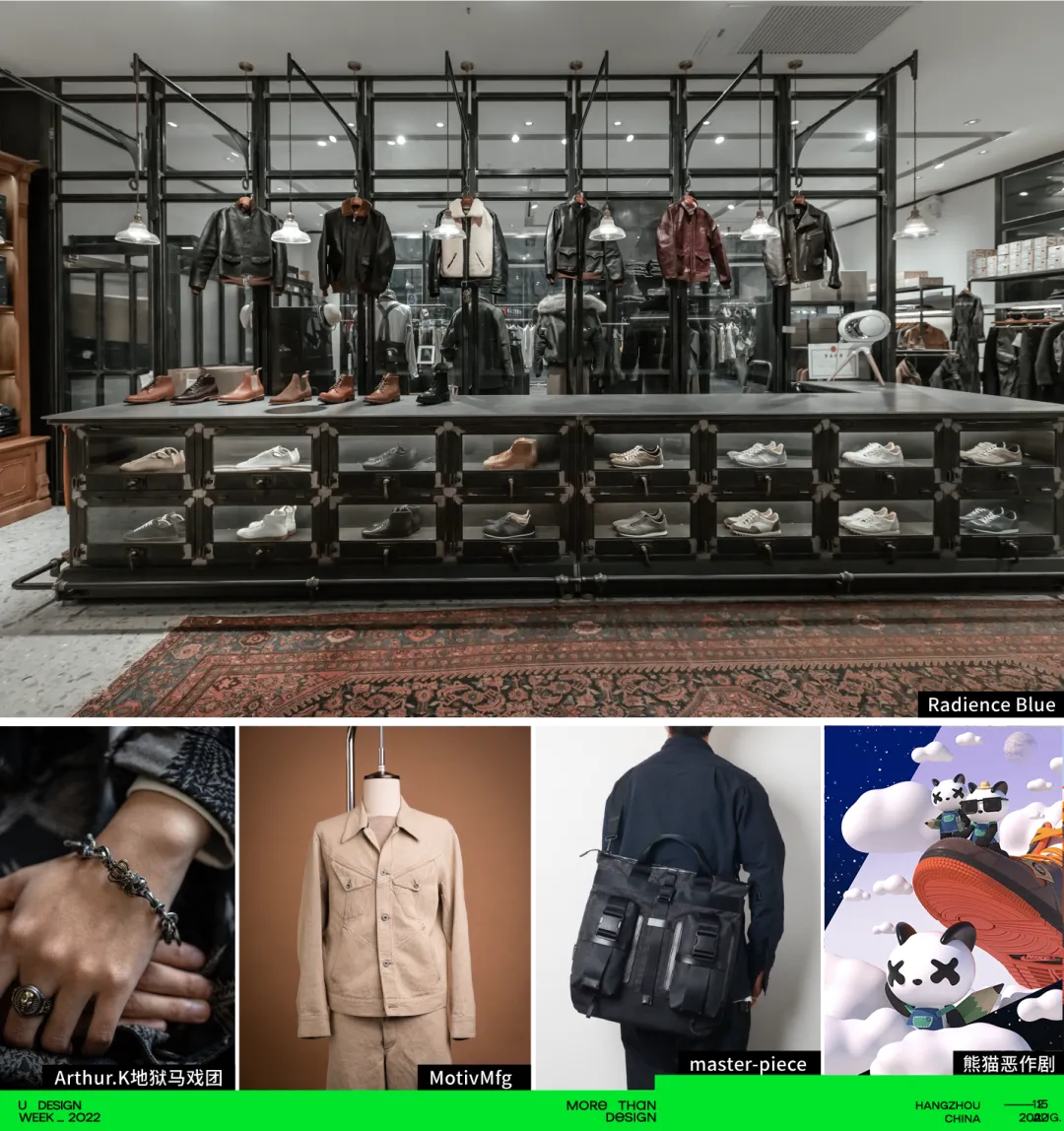 Radience Blue展出的MotivMfg、Porter classic带来是时尚潮流服饰的展览区域,联合Arthur带来的采用了大量柔和的曲线表达的Aurora女小丑饰品;以及倡导“所有潮流都值得被重新定义”的熊猫恶作剧带来的最新潮鞋,共同诠释新的潮流风向。