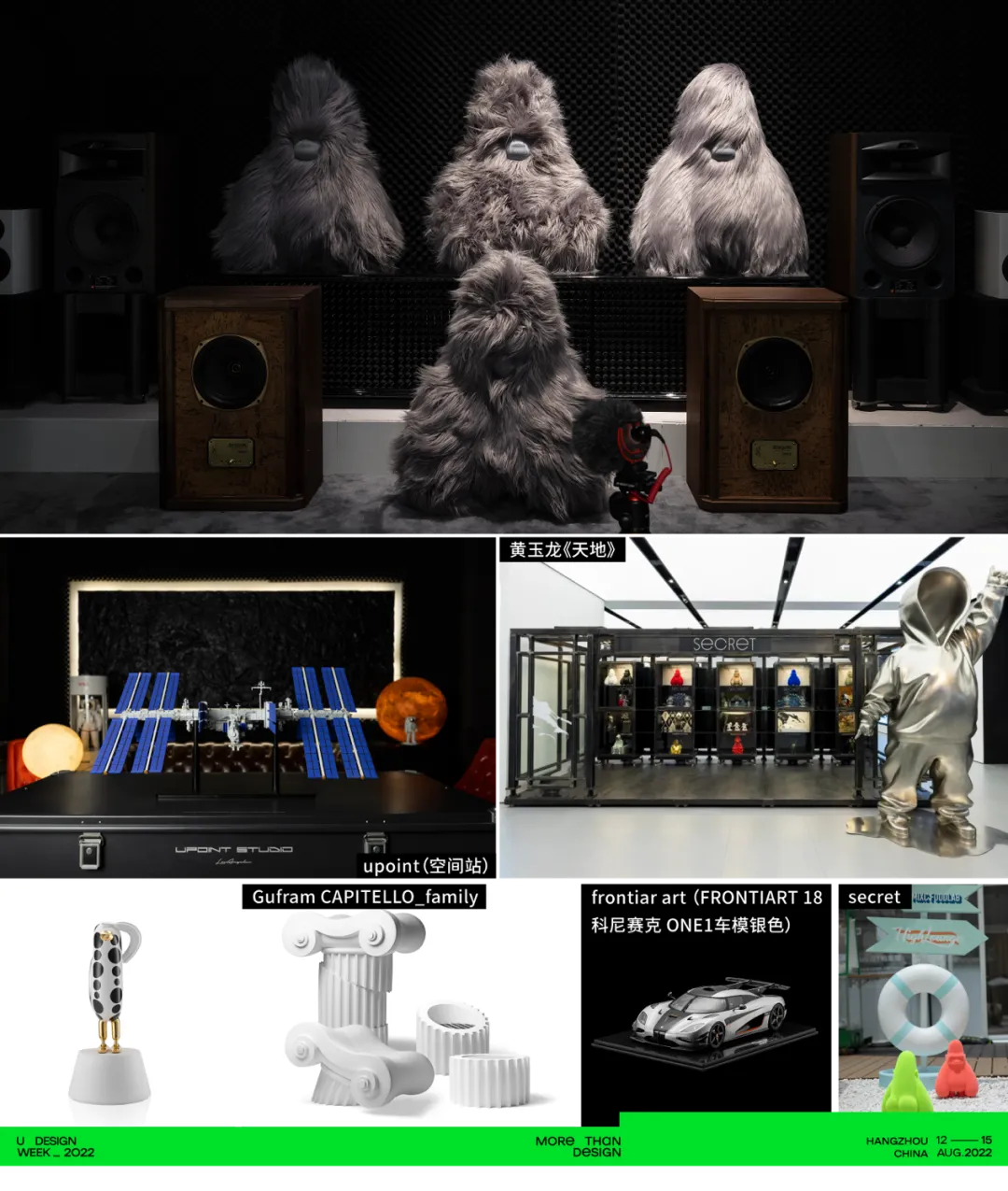 艺术摆件类:secret、黄玉龙《天地》、upoint(空间站)、Gufram 等品牌共同展出他们的产品,新颖的设计和别致的造型,是摆件、也是艺术收藏品。