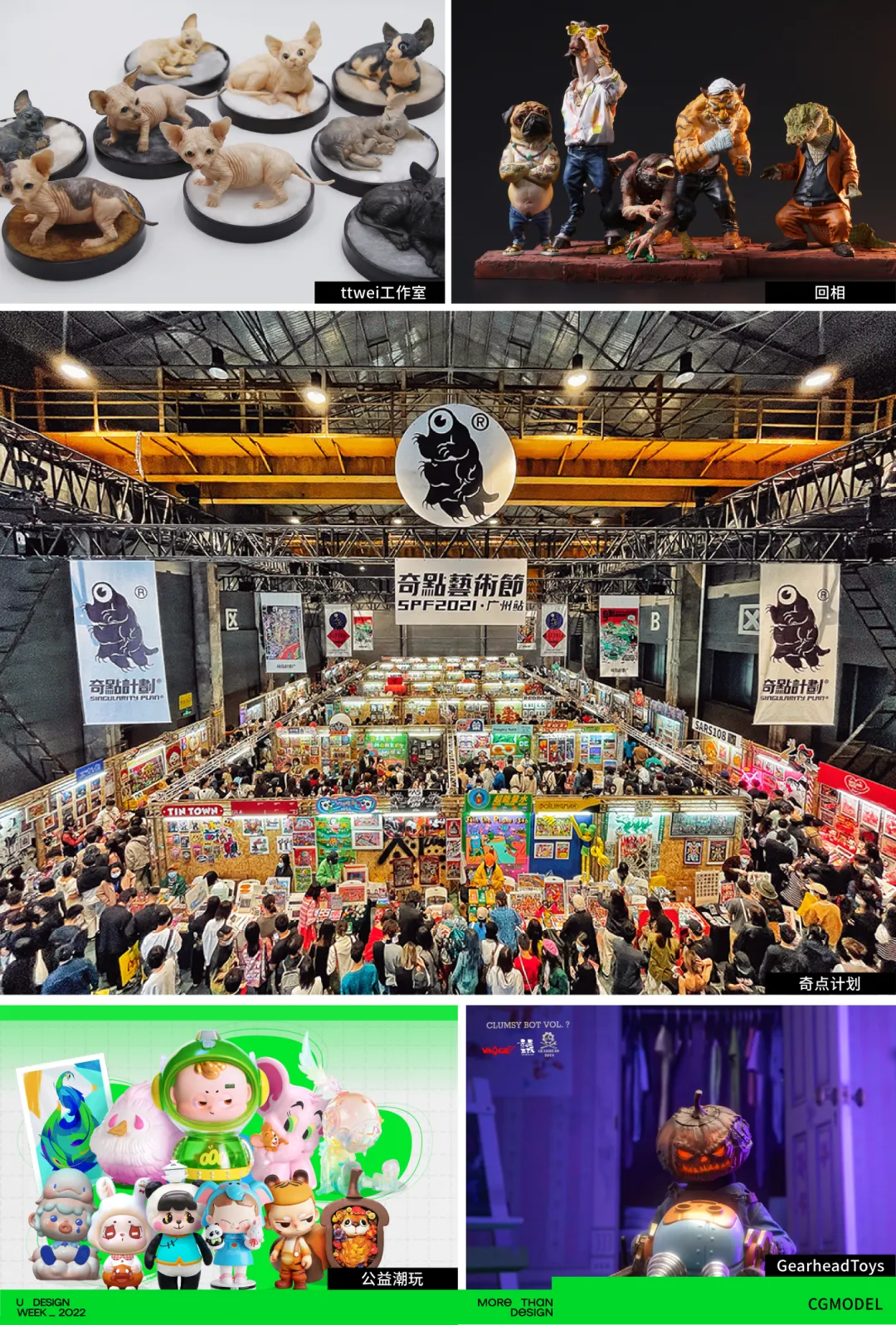 创办于香港、面向潮流年轻人推出收藏级玩具的Underverse;国内代理独立潮玩艺术家和设计师的幸会潮玩;致力于打造一站式IP研发及孵化体系的模言文化;致力于推广潮流文化TOP TOY等品牌都将带来颠覆性的独创潮流作品。国内火爆的奇点计划®️同时会带来知名艺术家、设计师的创作作品;以及B站的伙伴也将带来他们自己的IP品牌进行展出。13block、AMIGOTE、Geamark集客、回相等等都将展示自己的潮酷作品,这将是一次潮流文化的大聚会!