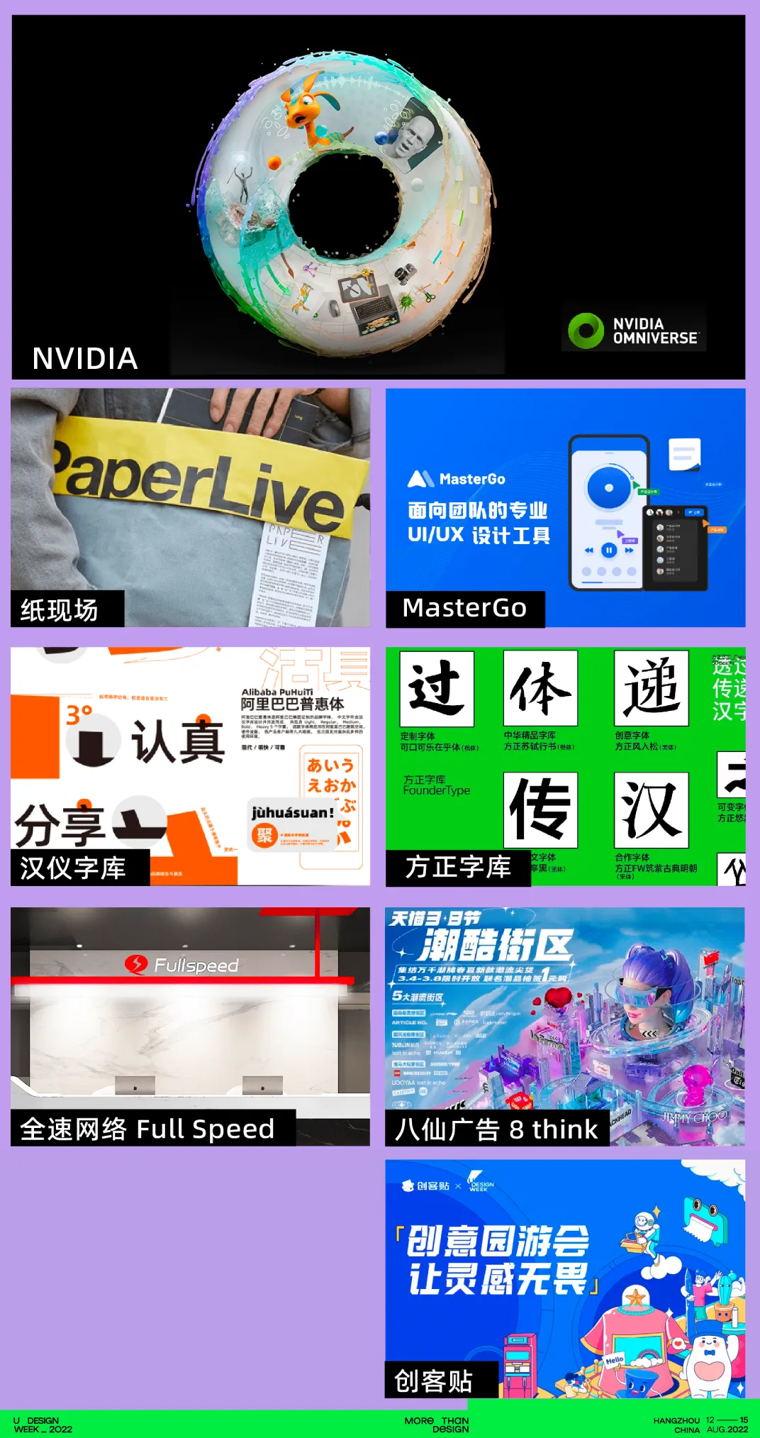 还有NVIDIA、MasterGo、汉仪字库、方正字库、创客贴、纸现场、全速网络 Full Speed、八仙广告 8 think,一起探索未来科技在现实生活中的如何应用,共同描绘数字化设计新场景,探索科技在社会发展中的积极意义……