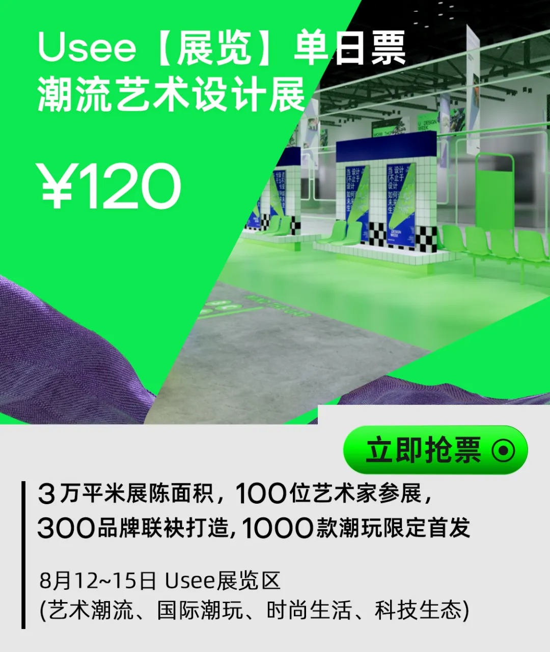Usee潮流艺术设计展,分为潮流艺术、国际潮玩、时尚生活、科技生态公益四大板块精彩内容。这里定是8月一定不能错过的打卡胜地!快来跟着小编,提前康康精彩内容呗!