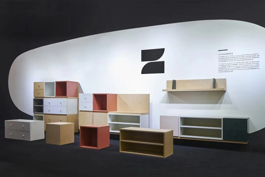 原创家居品牌造作这次的展位上最大的亮点要数和建筑师青山周平联手打造的全屋收纳系列了。这也是网红周平第一次跨界做设计产品,简约的原木色+白色百搭任何空间,橙色点睛又不失跳脱。