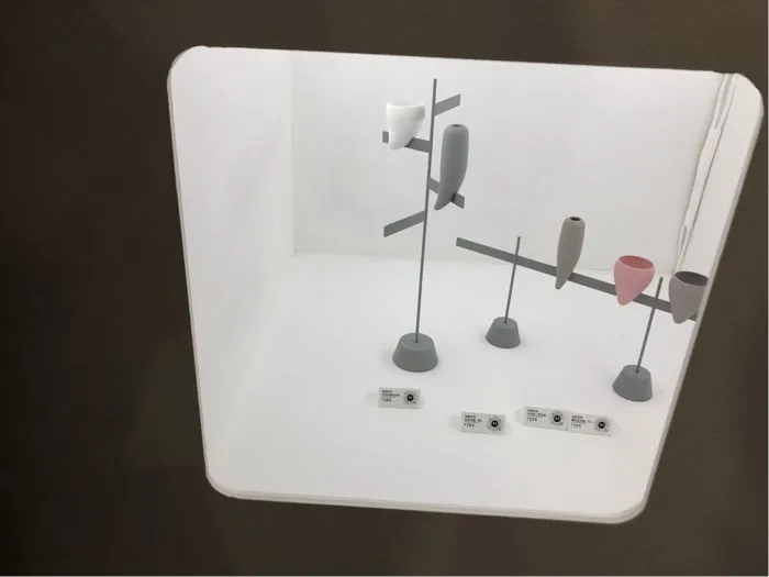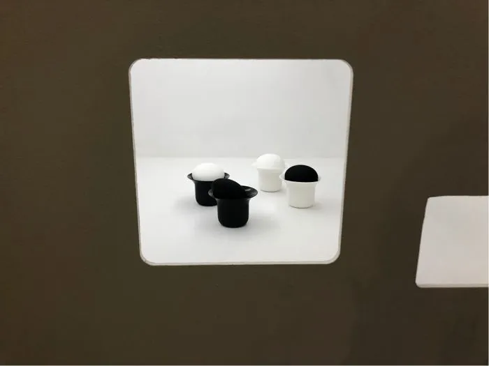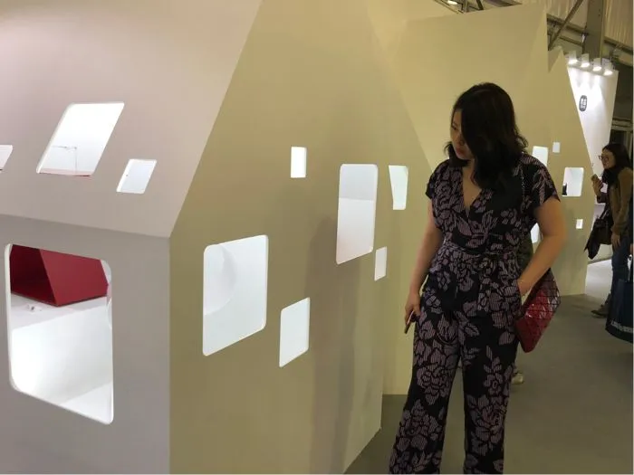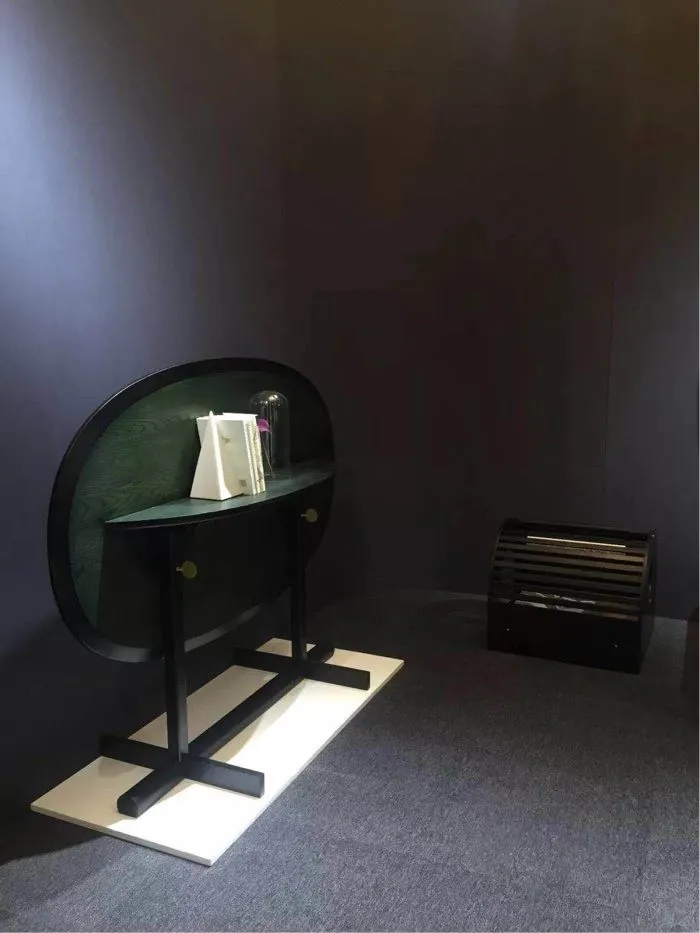 在当代设计馆一层哲品展区的入口处,nendo佐藤大设计的字谜系列限量款家具吸引了不少观众的眼球,汉字的轮廓和内涵被嫁接到有形的桌椅之上,结构简单,却能让人与眼前的汉字元素产生强烈共鸣。哲品的整个展区以 “妙物村庄”为主题,搭建了几座雪白的小房子,里面陈列着荣获IF、红点、GOOD DESIGN等国际设计大奖的精致产品。由于每间小窗里只摆放一套产品,每次透过窗口向内窥视时都不会造成视觉干扰,营造出一种纯粹的仪式感。