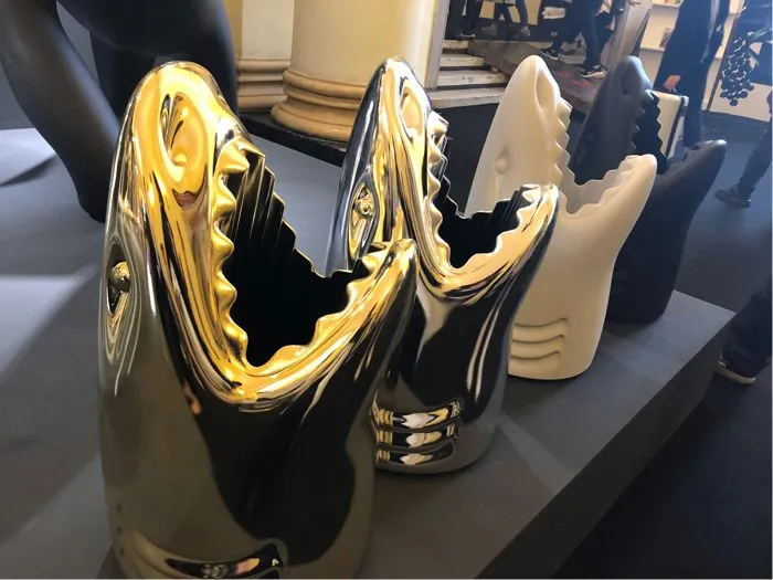 极尽古灵精怪气质的意大利设计品牌Qeeboo的展位互动的人极多,几乎带着几分装置艺术的属性。把手伸进鲨鱼的血盆大口中是日常收纳的步骤之一,而兔子和骷髅也不过是想象力爆表星人的家居必备坐骑而已。