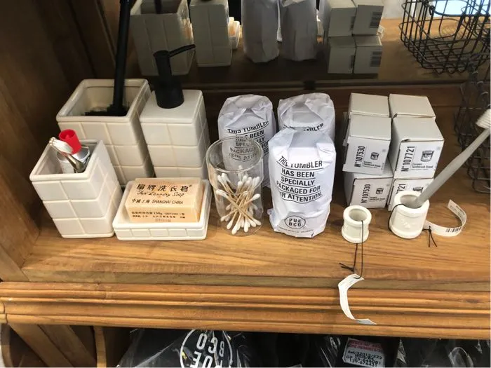 在上海本土Lifestyle品牌R.G.F的引荐下,日本杂货品牌PUEBCO将极简工业风的酷带来了设计上海。骨子里透着“拿来主义”的PUEBCO,凭借回收材料的运用,让每件新旧难辨的产品既显得极简克制,又表现出高水准的品质感。PUEBCO的品类非常丰富,军绿色的帆布袋、印着黑色字体的收纳圆筒,各种带有年代感的实用小物,再到各种家居摆件、香水、服饰,将硬朗、vintage的气质辐射到生活方式的各个方面。在被色彩、创意、现代感等元素层层包围的当代设计馆,古董货架般的PUEBCO展柜简直就是另一个世界。
