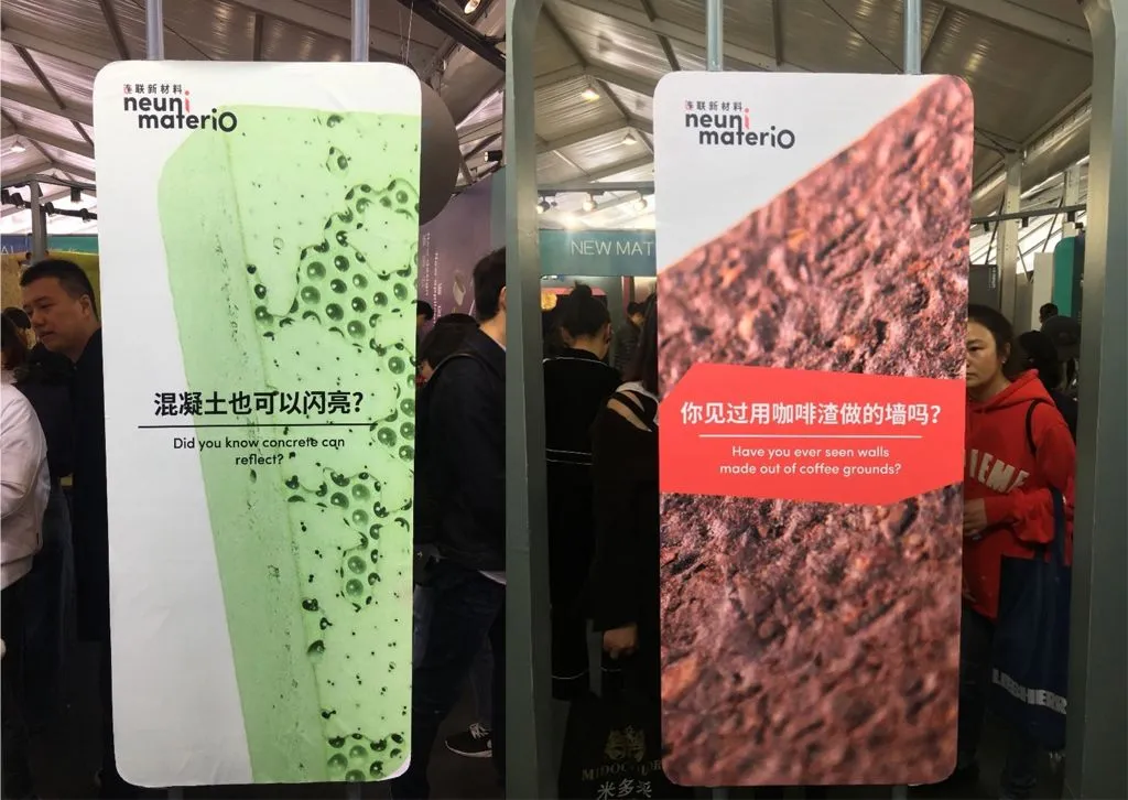 新材料研发团队neuni meateriO这次展示了不少前所未见的奇异材料。用咖啡渣做的墙、用牛奶做的纸、用植物做成的手机壳、用织物做的不锈钢、会发光的混凝土、充气的金属块、以及传说中五彩斑斓的黑……总之,我们从前印象里毫无联系的两个概念,在奇妙的新技术下,竟神奇地将它们融为一体。