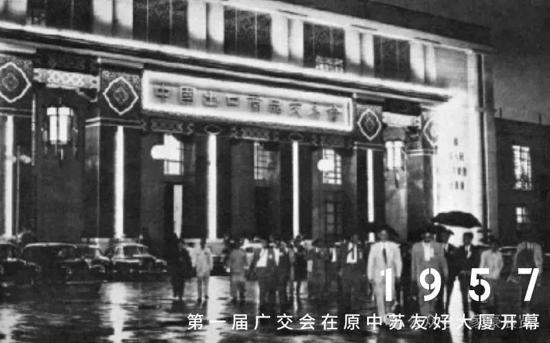 中苏友好大厦于1955年7月底建成,第一届和第二届广交会在此举行。1957年两届广交会成交额超过8600万美元,在当时可谓空前成功。