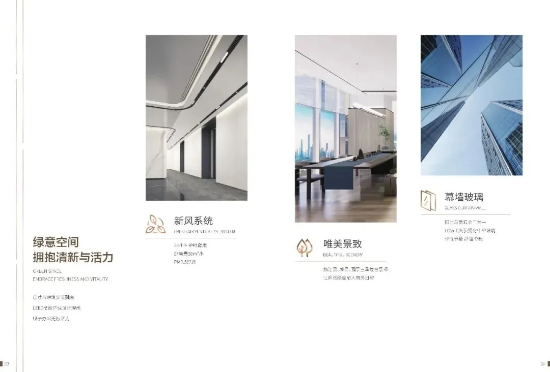 采用国际节能环保设计标准,充分显示项目作为绿色建筑典范在节能环保、可持续发展领域的出众表现。引进先进新风系统,以科技手段保障建筑低耗能,营造舒适、健康的办公室工作环境,护航总部企业商务健康.