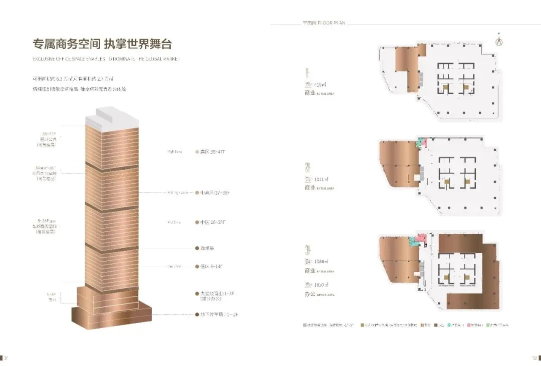 楼层分布:商业1-3层,写字楼5-33层为租赁楼层,34-47层为销售楼层
