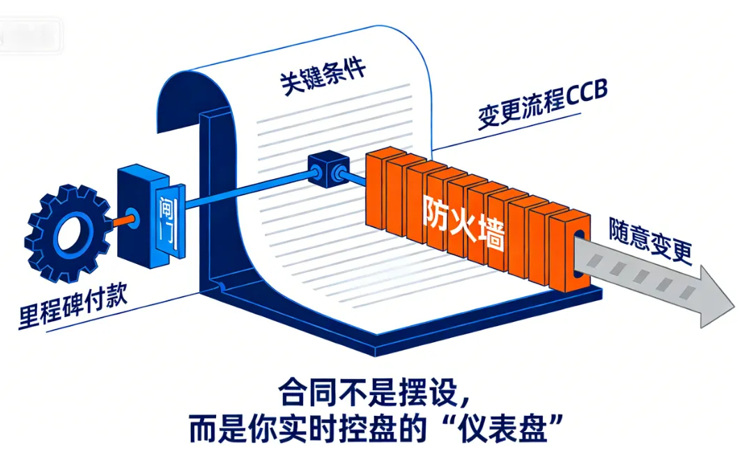 当项目进入执行,不确定性开始爆发。此时,许多采购会陷入被动救火。而高手早已将 “合同”变为主动管理的“遥控器”。