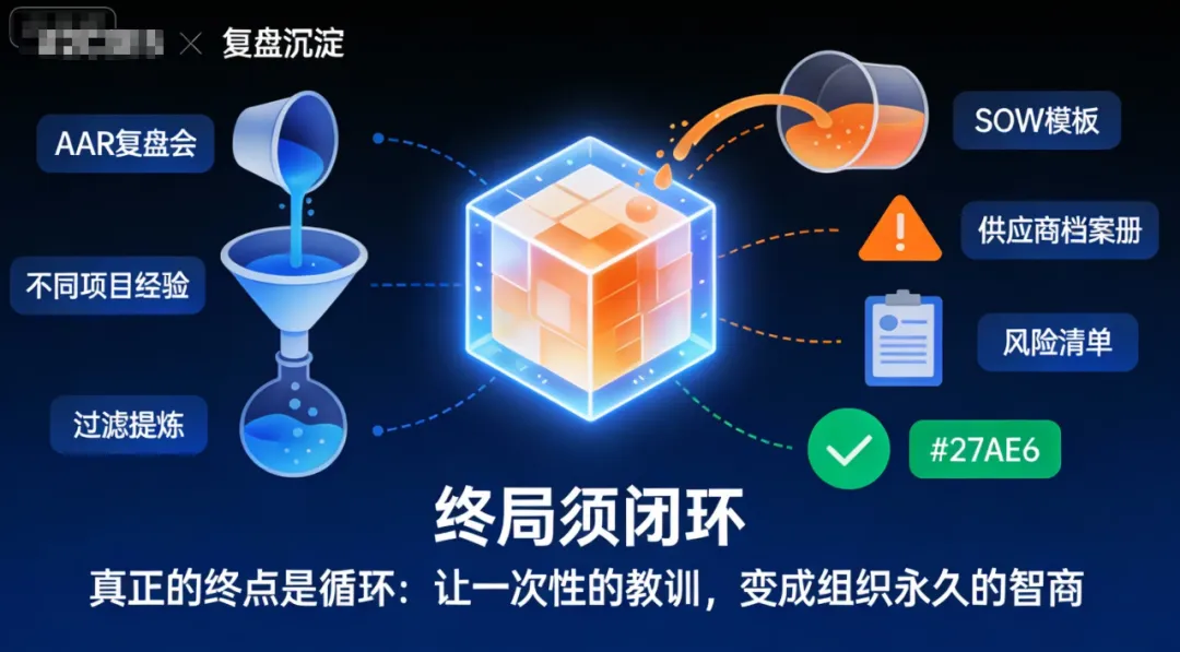 对内(复盘报告):更新你的SOW模板、评标标准、风险清单,让下一个项目站在你的肩膀上。