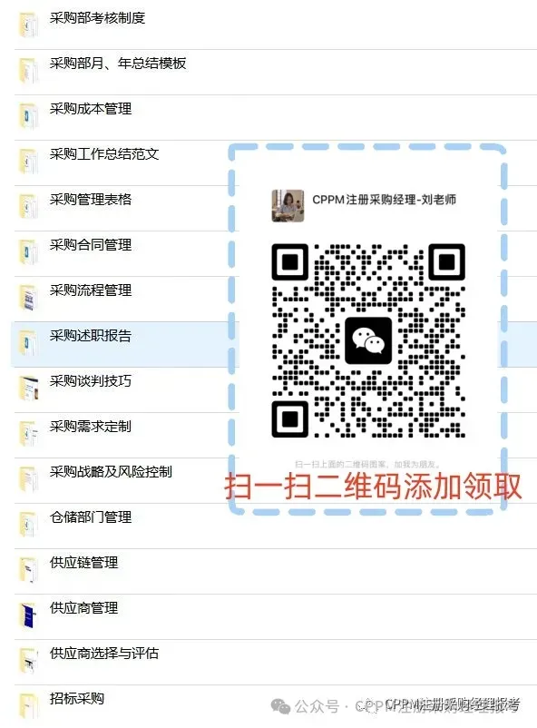 关注CPPM注册采购经理报考,联系刘老师微信15753000552,可以免费领取采购干货资料